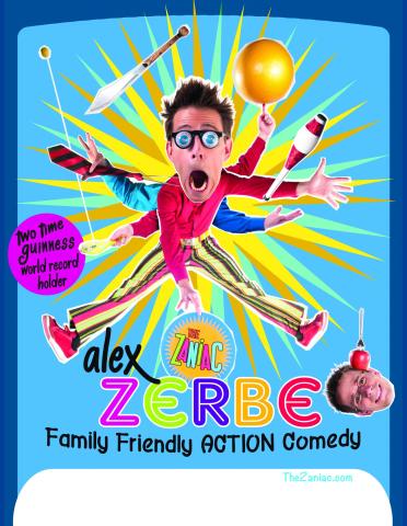 This week for Fun Friday, we will have "the zaniac" ALEX ZERBE here to entertain us. This special performance will take place at 3:30 in the children's wing.