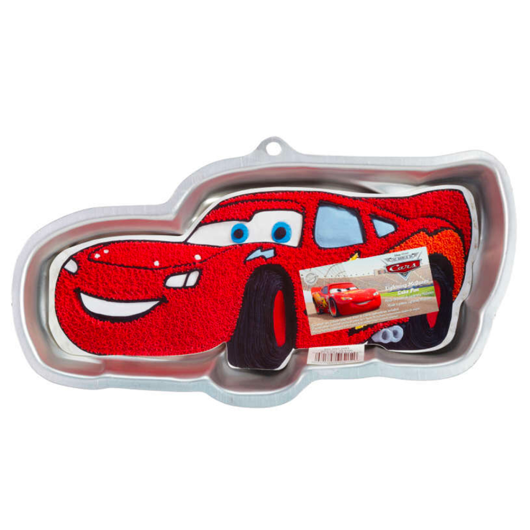 Make a cake in the shape of the Lightning McQueen from the movie "Cars." Use and care instructions: Hand wash with warm, soapy water. Rinse and dry thoroughly. Dishwater use is not recommended. Avoid using metal utensils, scouring pads and abrasive cleaners. Acid from some foods may stain the pan.